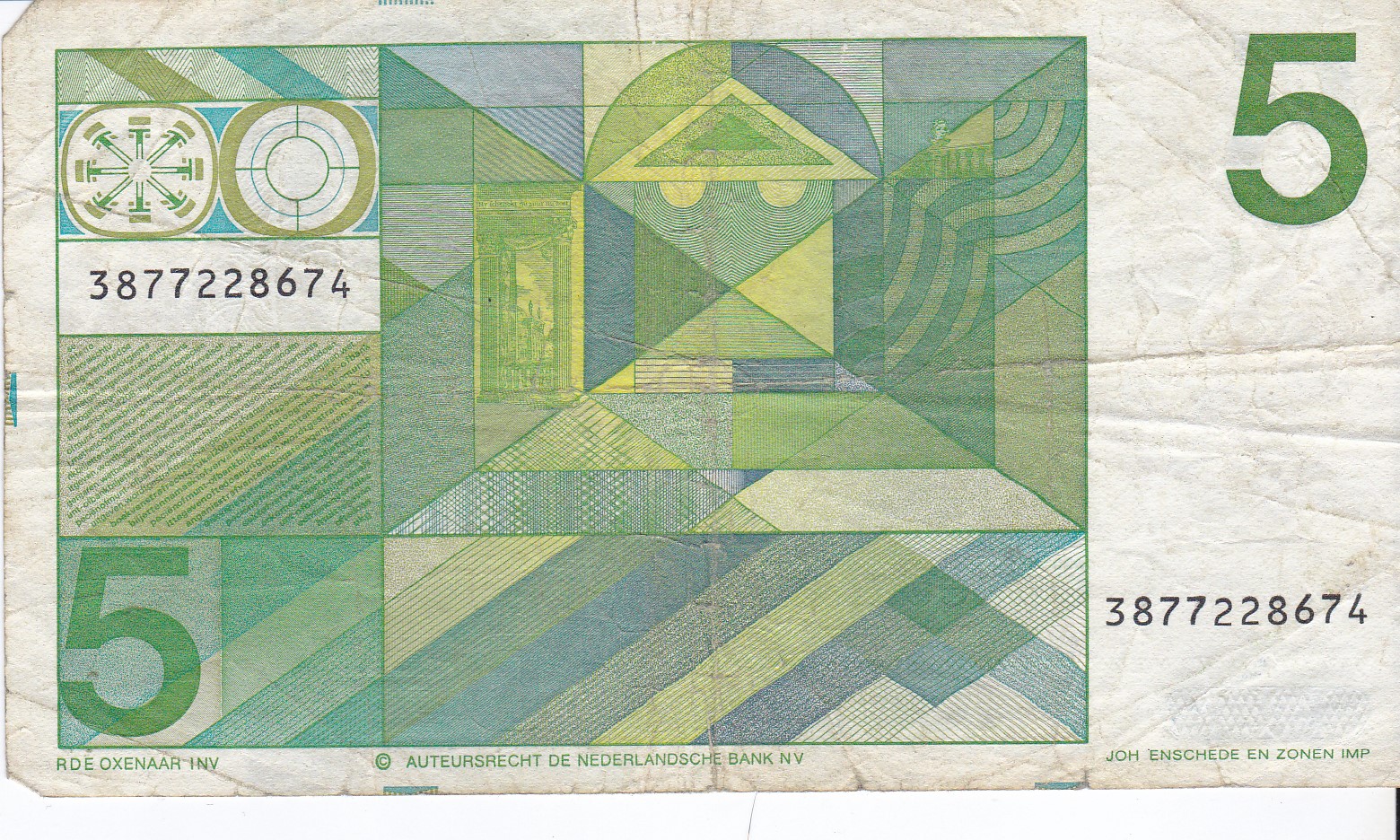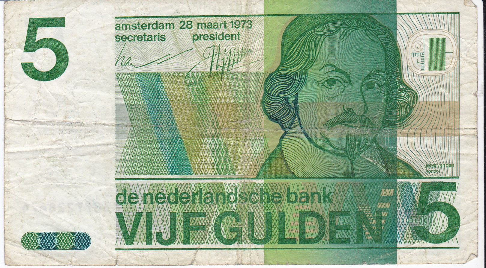Roulatie biljet van 5 gulden uit 1973 Johan van de Vondel